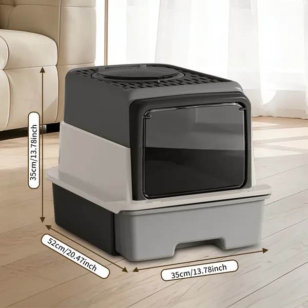 Elevate your home and your cat’s daily routine with this premium enclosed cat litter box from Hauting Pet Selection, a top-rated brand featured in the 2026 Cat Litter Box Buyer’s Guide. Designed with discerning pet parents and their feline companions in mind, this luxury litter box combines functional elegance with thoughtful engineering. The dual-access design lets your cat choose their preferred entry-whether they prefer the privacy of the transparent front door or the convenience of the top opening-while the fully enclosed structure locks in unwanted odors and contains litter scatter, preserving the pristine look of your modern living space. The built-in precision sifting grate eliminates the need for messy litter scoops, effortlessly separating clean litter from waste to cut down on daily maintenance. Inside, the spacious 52×35×35cm interior provides ample room for large cat breeds up to 20+ lbs, so your big feline friend never feels cramped. Finished in a sleek multi-tone gray, this litter box blends seamlessly with any home decor, from minimalist apartments to cozy family homes. Plus, the smooth pull-out drawer allows for hygienic, hands-free waste removal, minimizing direct contact with soiled litter. Treat yourself and your cat to a premium litter solution that prioritizes comfort, cleanliness, and style.