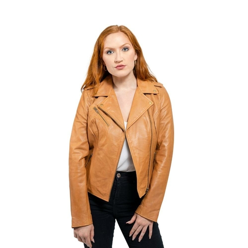 Iconic biker style is yours in this women’s Whet Blu leather asymmetrical motorcycle jacket. Also available in Sangria and Oxblood.
