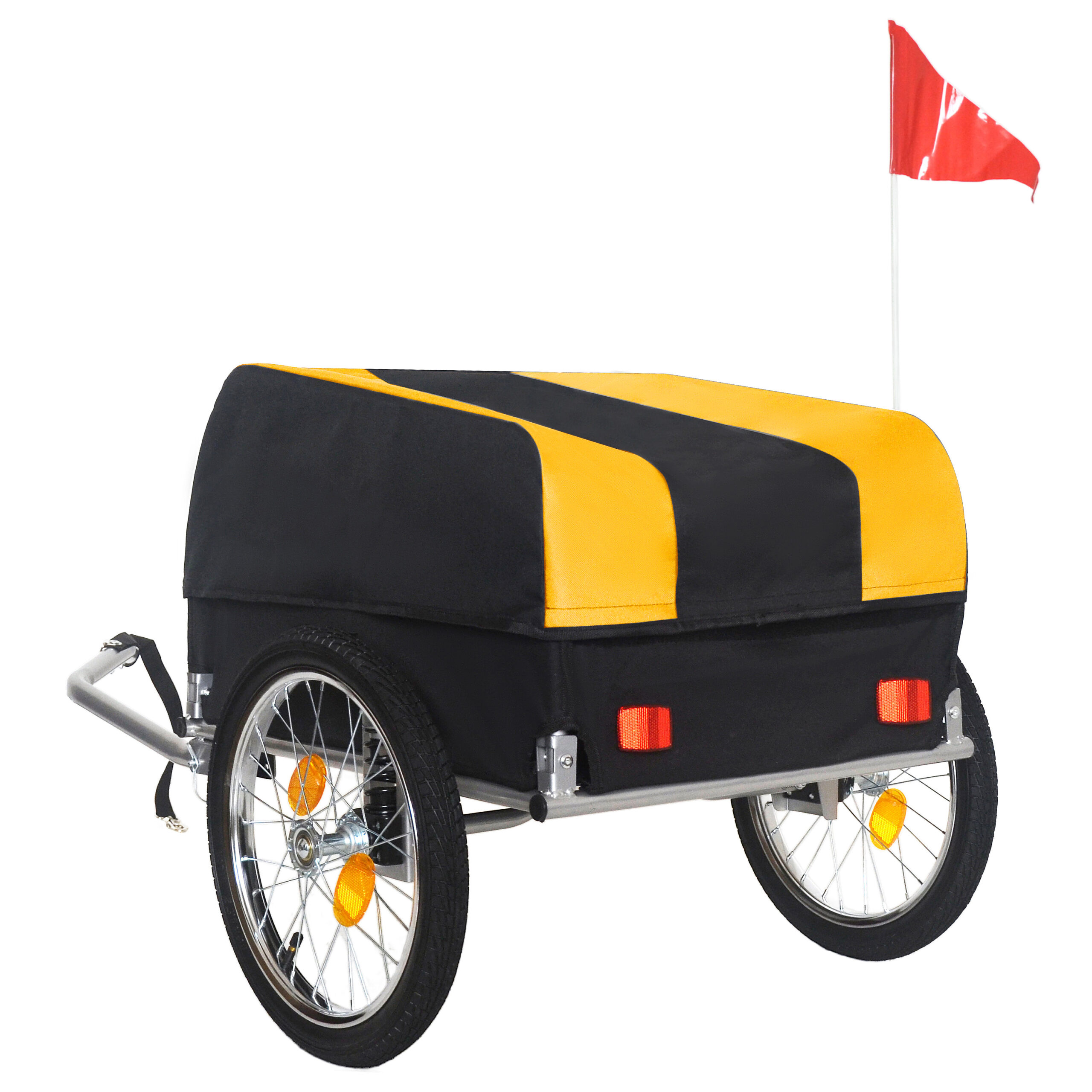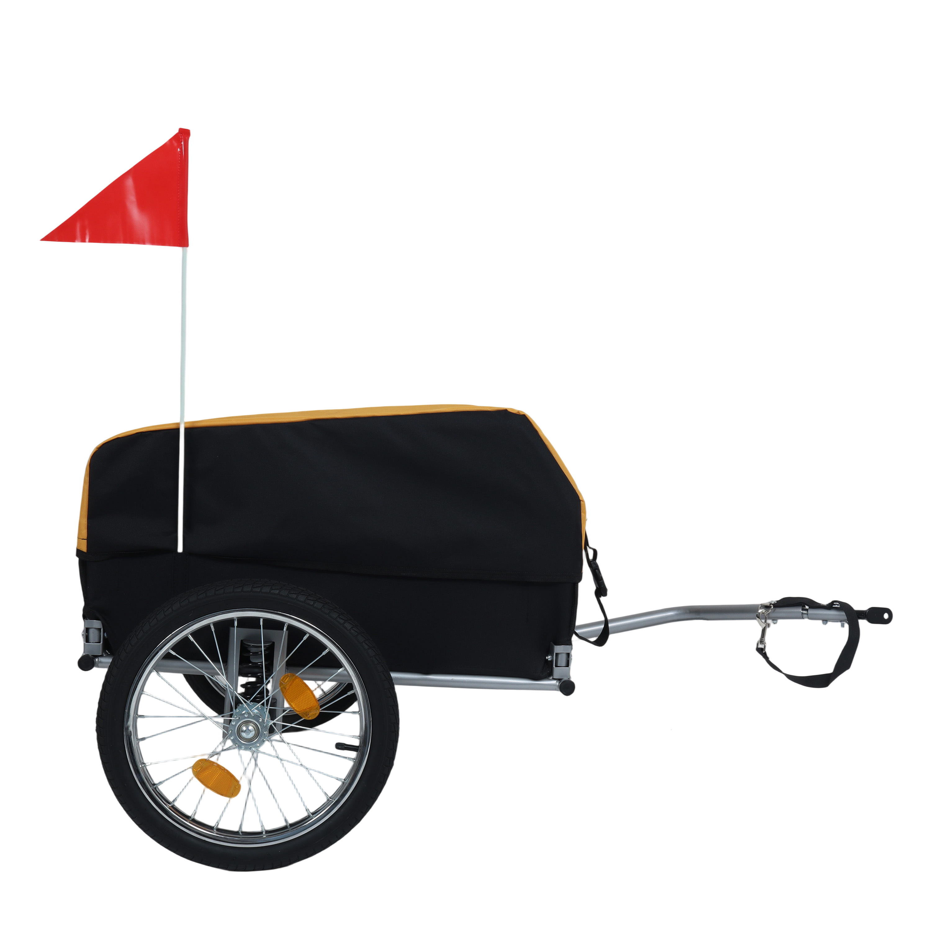 Product Name:Heavy-Duty Bike Cargo Trailer with Removable Waterproof Cover – 88 lbs Capacity, 16″ All-Terrain Wheels & Foldable Design for Camping, Groceries, yellow black